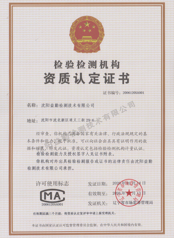 沈陽CMA檢測公司網站圖版文字視頻這類版權聲明:益勤檢測無法鑒別所上傳圖片文字視頻等知識版權,如果涉獵侵犯版權或違法內容,請及時通知聯系普法志愿服務網平臺法務400-039-6198,官方將在第一時間及時刪除!